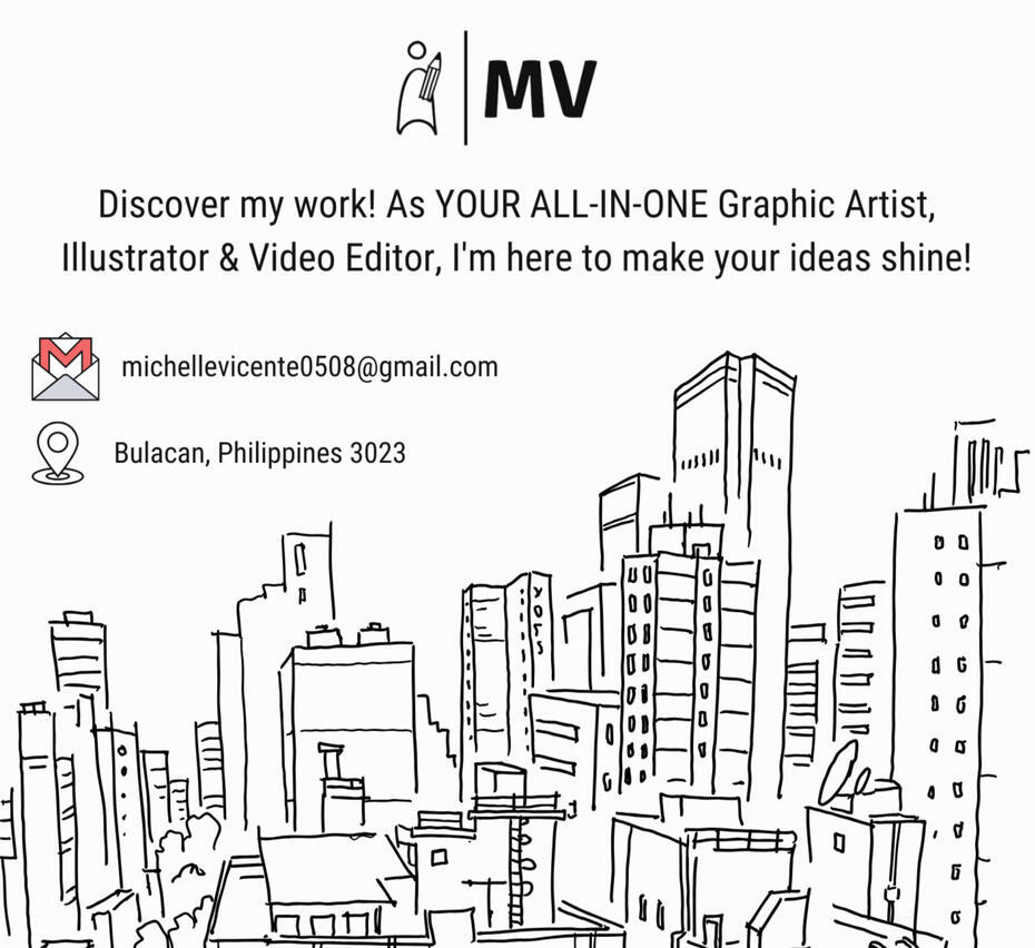 Hello! I'm Michelle Vicente, a passionate Graphic Designer from the Philippines with four years of experience in creating visually stunning designs. My mission is to bring your brand to life through creative and impactful visual storytelling. I take pride in providing exceptional customer service and my skill in transforming concepts into captivating visuals that truly reflect the essence of your brand.
